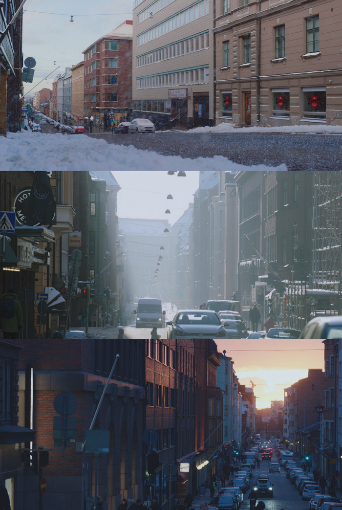 具体到《在暴雪时分》,赫尔辛基优雅静谧的城市特点与黄天仁对于镜头调度的用心相得益彰。