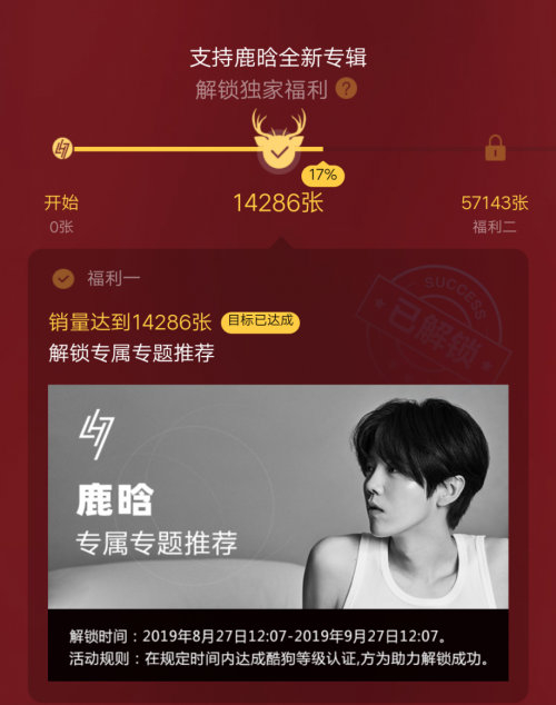 截至8月27日午间,《π-volume.2》成功认证QQ音乐钻石唱片和酷狗音乐金唱片,并成为QQ音乐平台首个&唯一获得9张钻石唱片认证数字专辑歌手。惊人的数字背后,无疑都印证着乐迷们对“鹿式音乐”的极度期待。