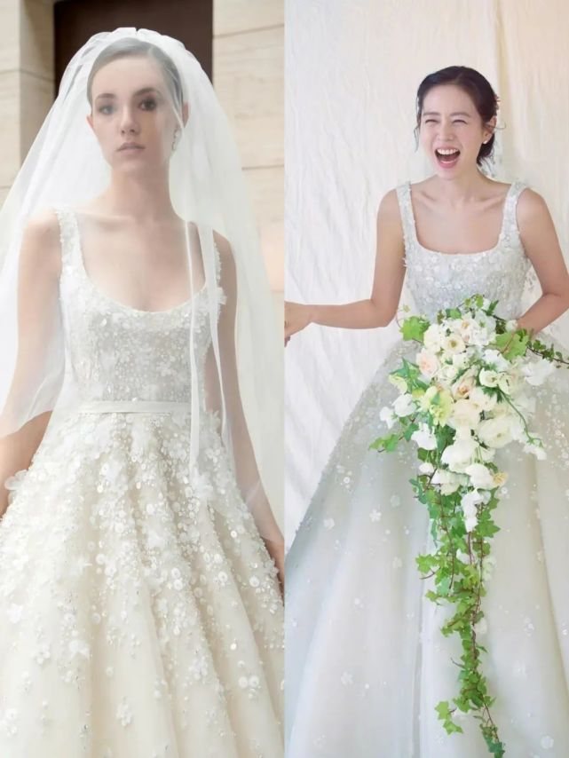 目前曝光的孙艺珍两件婚纱都是纯白色,品牌和款式的选择也都比较保守。重简约大方,非常气质,特别适合“孙仙”的名号。