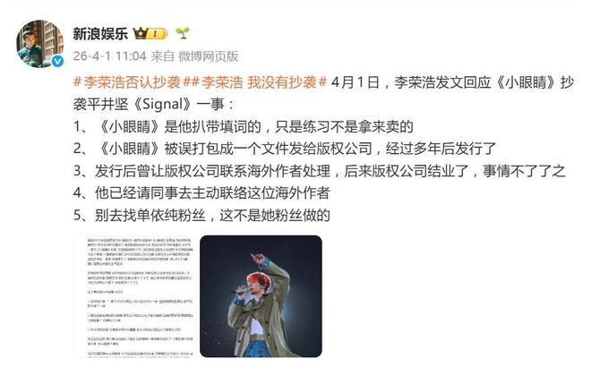 这场持续多年的“抄袭”罗生门,在李荣浩近乎“自曝式”的回应中,呈现出了一个截然不同的版本:不是刻意模仿,而是一场因管理疏失导致的陈年旧账。网友在等待跨境沟通结果的同时,也看到了一个音乐人对“原创”标签近乎执拗的捍卫。这件事最终如何解决尚未可知,但李荣浩显然已决定不再让这个“心病”继续堵下去。
