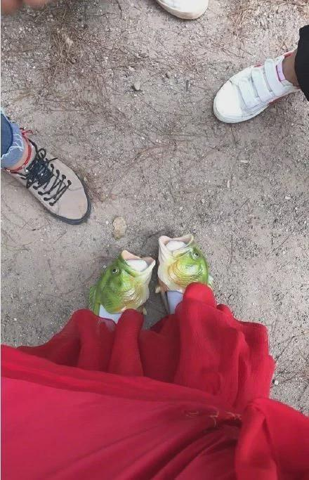 杨紫的沙雕玩具还不止这个鱼头,她之前还有一双鱼的形状的鞋子,她还把这双鞋子晒出来。和其他普通的鞋子一对比,杨紫这双鞋子可真的太奇怪了。
