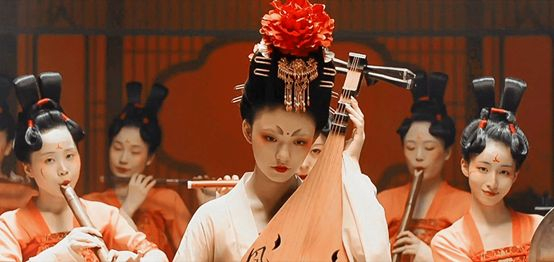 而在《梦华录》里,林允同样梳着高高的发髻,却不像鞠婧祎那样整个人花枝乱颤。她坐得端正,手抱琵琶,轻抚琴弦。偶尔抬头、转头,但是动作幅度不大,转头时也只是轻轻移动。所以她头上的步摇冠会随着她头部的动作轻轻晃动,但却不会张狂地乱跑,甚至纠缠在一起。