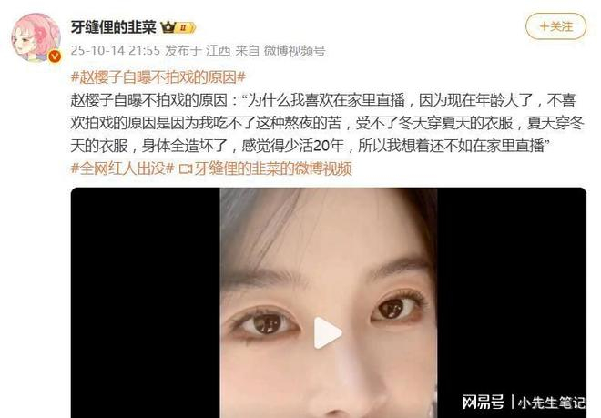 赵樱子自曝不拍戏的原因:吃不了熬夜的苦,还不如在家里直播
