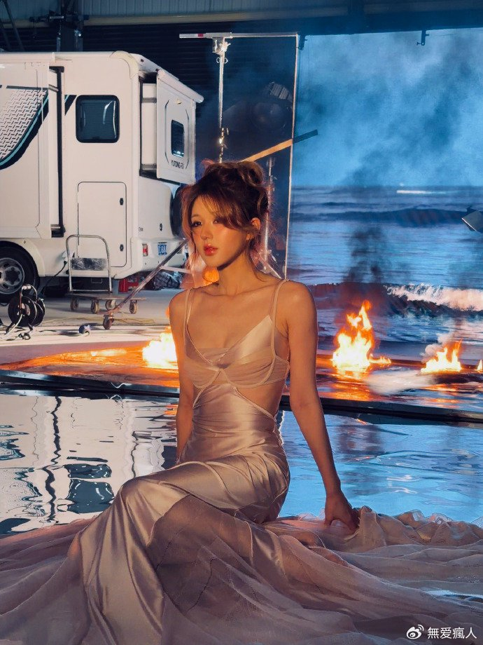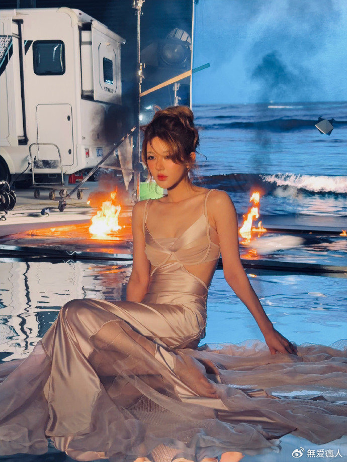 随着镜头转换,片场的灯光营造出别样氛围。火焰在背景中跳跃,烟雾袅袅升腾,而赵露思宛如从梦幻中走来的仙子,在这光影变幻间,眼神中流露出的或是沉思,或是淡然,每一种情绪都被她拿捏得恰到好处,仿佛在无声地诉说着一个神秘而动人的故事。