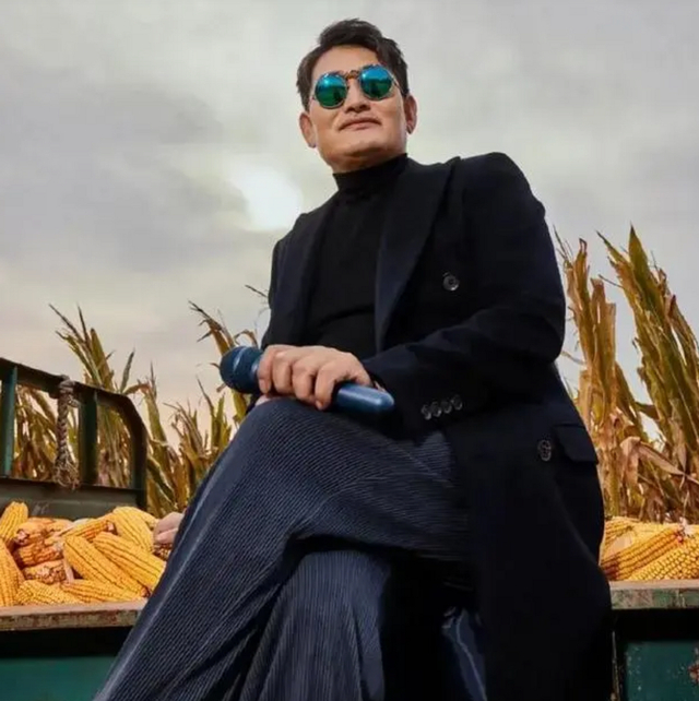 大衣哥这组照片可以说拍得相当成功了,也难怪是可以登上《男人装》杂志的封面图。从画面上来看,大衣哥身穿黑色大衣,配上丝绒长裤,手中拿着麦克风和带着黑色墨镜,并且对于发型也收拾了收拾。而反差感的则是,大衣哥坐在一个满是玉米的三轮车兜中,也是体现出了乡土气息。