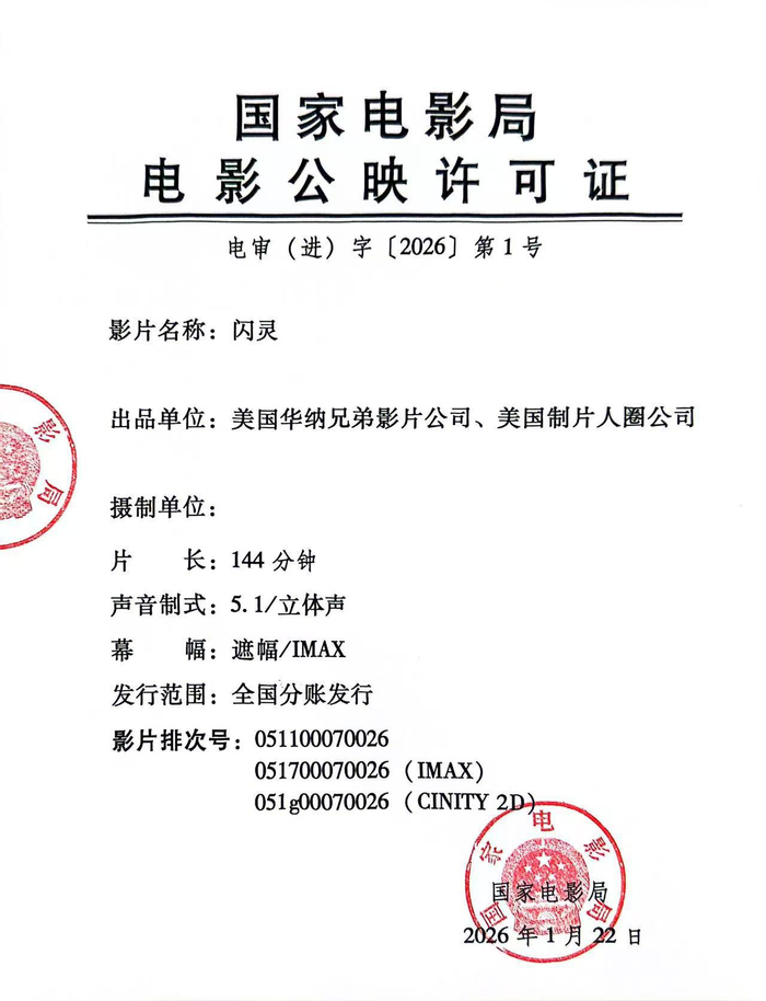 排 次 号:详见影片公映许可证