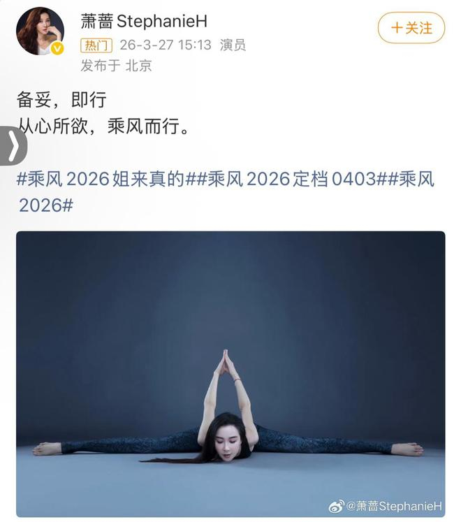 姐姐们自己的微博也都“整活”官宣——曾在《一帘幽梦》《小李飞刀》多部剧中有过精彩角色,现年57岁的萧蔷就直接发布了“一字马”造型,网友感叹:姐姐好强!