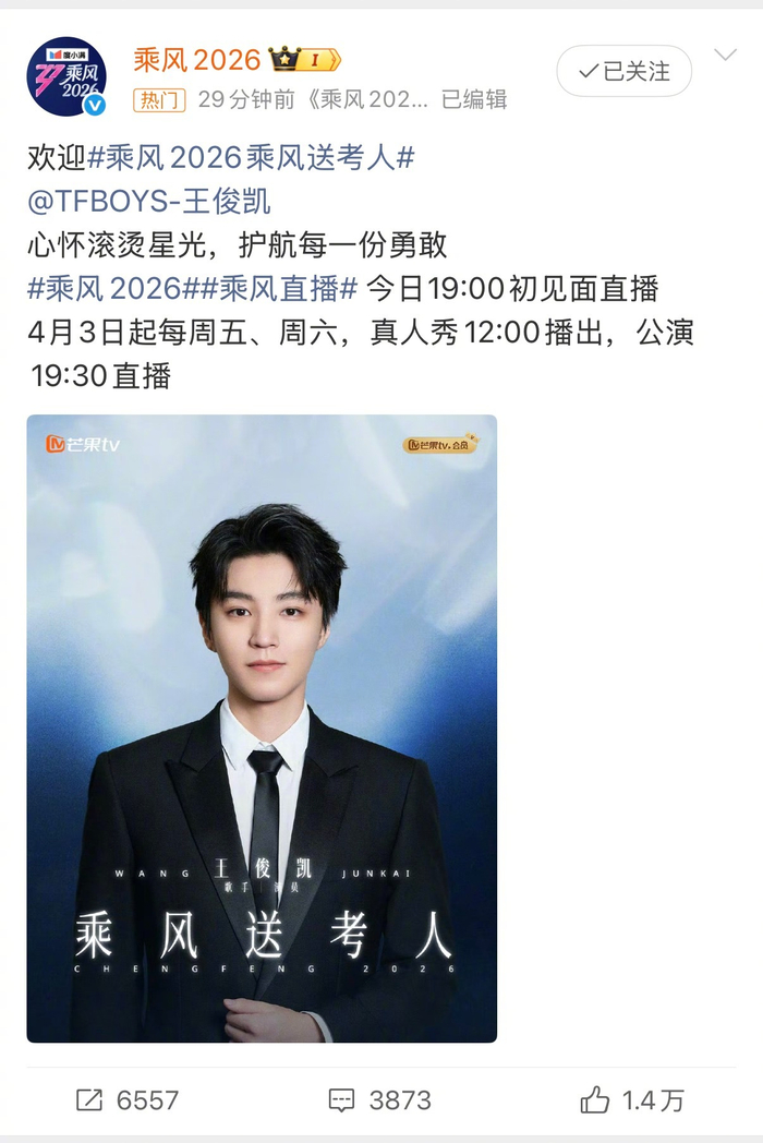 欢迎#乘风2026乘风送考人# @TFBOYS-王俊凯