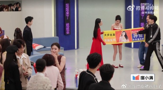 马天宇手持自制的蓝底黄字应援横幅亮相,上书"怡路生花,乘风破浪"的标语。孙怡一见便开启吐槽模式:"这配色像极了90年代乡镇歌舞团巡回海报!"更犀利点评横幅选图:"我那张闭眼照是黑历史啊!下次做应援记得先问我!"马天宇被怼得用横幅捂脸躲闪,现场哄笑声中镜头突然切走,观众甚至没看到他反击的"杀手锏"——藏在横幅背后的孙怡童年羊角辫丑照。