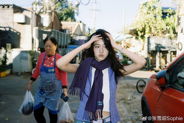 张雪迎从《狗十三》里那个倔强的李玩,到《泡沫之夏》里灵动的尹夏沫,在荧幕上她总是深深地融入角色的情感中 —— 有时是少年的隐忍,有时是少女的娇俏,甚至她站在镜头前的姿态都被角色的设计感所主导。然而,1月4日她发布的一条动态,简单的一句胡同里来了个女摄影师,却让她从荧幕角色的束缚中跳脱出来,置身于胡同的烟火气息中。她的紫色围巾松松地裹在肩上,红色上衣和蓝色牛仔裤搭配,笑容里没有任何角色的痕迹,反而是胡同里自由、随性的氛围,仿佛她随时能被镜头捕捉到,尽情展现真实的自己。