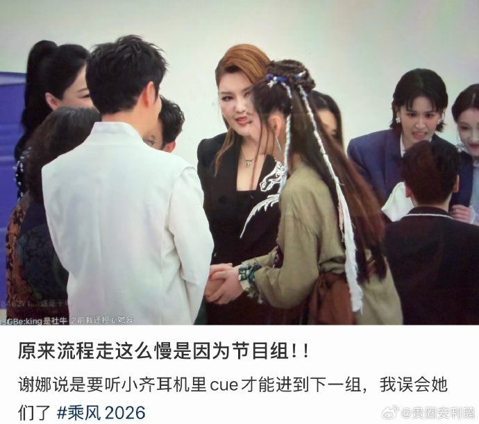 谢娜作为“乘风见证人”的核心职责本是提供情感支持与氛围营造,但直播现场需兼任流程推进。她未佩戴耳返,无法实时接收指令,只能依赖搭档齐思钧传递节目组调度信息,被动等待导致节奏失控。这种“情感粘合剂”与“流程把控者”的双重身份冲突,放大了执行短板。