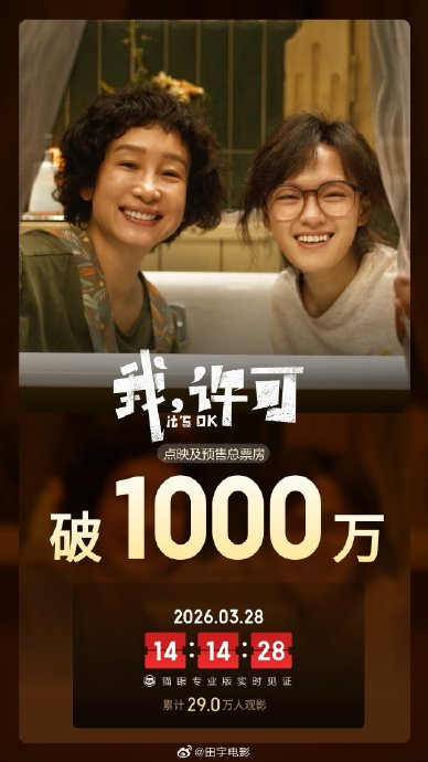 1. 《我,许可》 以2872万元预售成绩遥遥领先,占档期总预售近半份额。该片由文淇、秦海璐主演,聚焦母女代际冲突与女性自我觉醒,点映评分高达9.7分,女性观众占比超90%。
