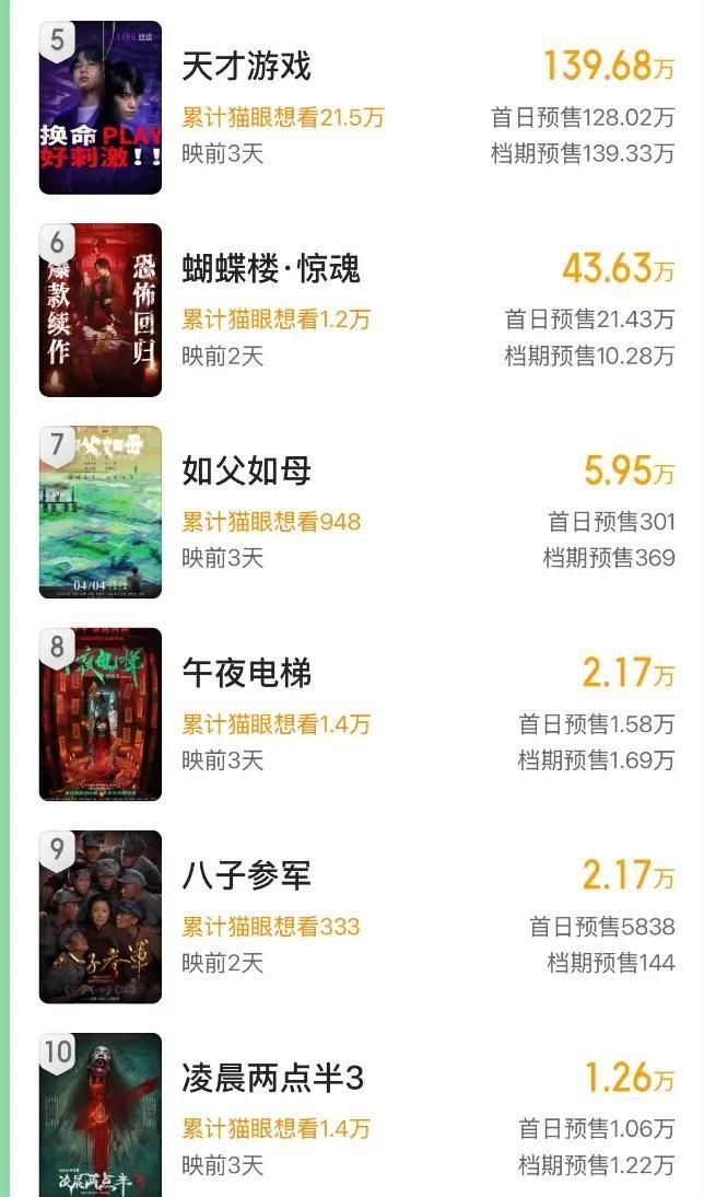 马上要迎来清明小长假,不少朋友早早就安排好了行程,踏青扫墓之余,都想着去影院放松放松。今年的清明档夹在春节档和五一档之间,没有多少头部大片挤进来,整体以中小成本的剧情片为主。还没正式开映,就有一部片子提前跑出了好成绩,预售直接冲过2425万,把同档期所有对手都甩在了身后。