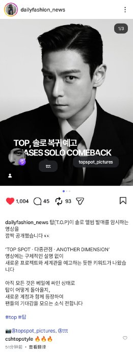 - 重建艺人话语权:脱离YG娱乐后成立个人厂牌TOPSPOT PICTURES,从企划到发行全程自主,开创顶流艺人脱离财阀体系的先例。这种"艺术家主导"模式,为韩国音乐产业提供了新的可能性范本。