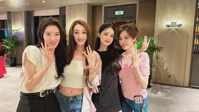 合照4人笑得很开心,看来聚会非常愉快。而且4人都好养眼,都是又高又瘦的高挑型身材,看上去光彩照人,都很年轻。