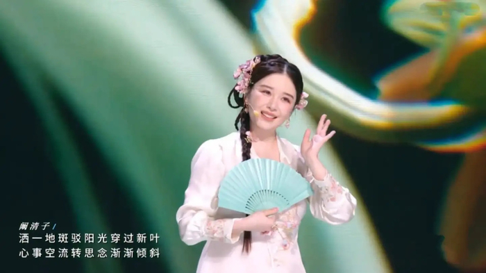 但一切都是低配,犹记得之前几季的古装舞蹈(发如雪、花田错、大碗宽面等),服装舞美造型布景,都是一等一的惊艳。本次《咏春》低配且中规中矩,伴舞均是亮面浅青的斜襟短褂,配合淡粉纱裙及垂腰长辫,优雅悦目。