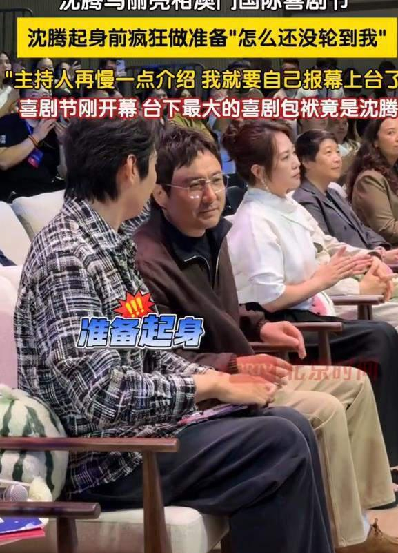 镜头记录下的细节更显喜剧人本色:沈腾在起身前疯狂做心理准备,表情写满 " 怎么还没轮到我 ";主持人若再慢一点介绍嘉宾,他仿佛就要自己报幕上台。当听了一圈没有自己名字时,他只能默默鼓掌,最后还下意识看了看马丽,仿佛在确认 " 都没看见这一幕吧 "。喜剧节刚开幕,没想到台下最大的喜剧包袱竟是沈腾本人。