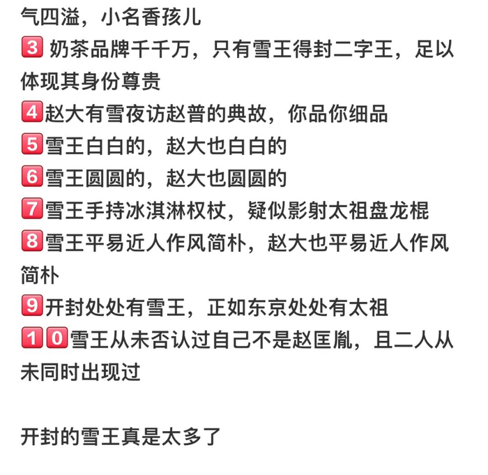 你看别的奶茶品牌,代言人一个接一个,从顶流到当红炸子鸡,几乎一个不落,雪王?它的代言人只有一个,雪王本王。