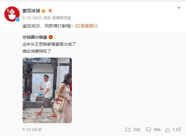 王思聪被拍到喝蜜雪冰城,形象都开始接地气了。