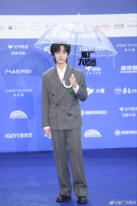 淅沥春雨中,一柄透明伞下身着Versace灰色细纹西装的少年踏过运河蓝地毯,贺峻霖第十六次站上北京国际电影节红毯的姿态,已从初临的青涩蜕变为游刃有余的从容。当被问及感受时,他含笑以清朗的播音腔回应:“第四次参与北影节,越来越像回家一样了。”这句带着温润书卷气的自白,瞬间点燃网络热议,也让“贺峻霖北影节红毯播音腔”成为本届盛典最动人的声音注脚。