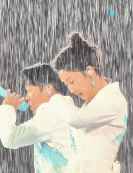 演唱会下大雨曾毅扔伞,玲花苦笑大喊烦人,也扔伞被雨淋惨了