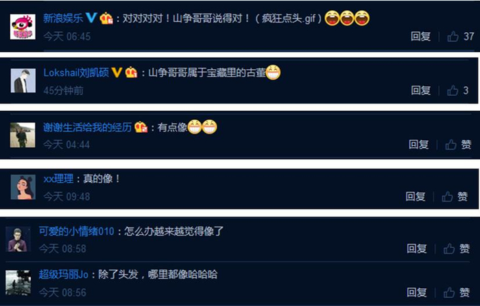 时间回到24日下午,新浪娱乐官方微博发布了一组尼格买提主持的《你好生活》节目截图并写道,“@尼格买提 在节目中被错认成@撒贝宁,结果,小尼无奈自曝经常被人认成@徐峥 ,身边人也纷纷表示真的很像。”