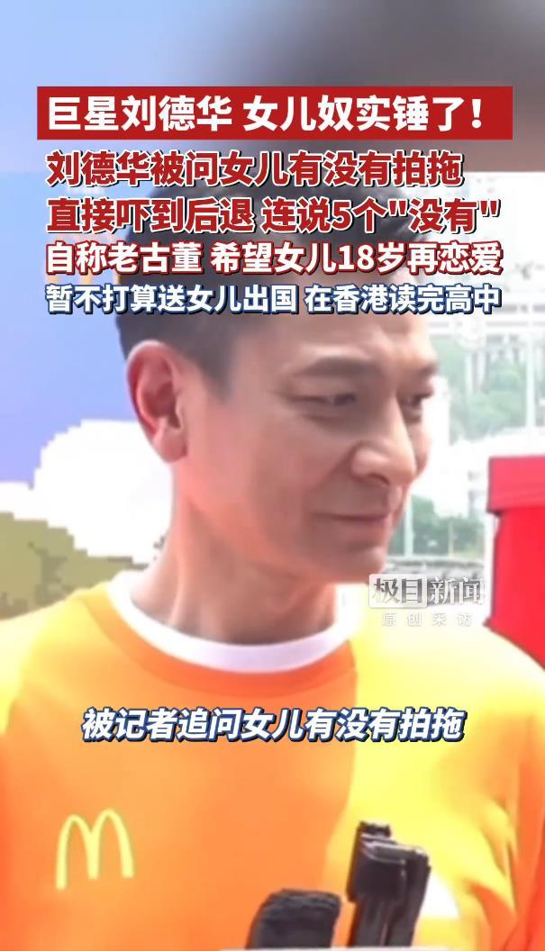 被问到能接受女儿多大年纪谈恋爱时,刘德华思考了几秒钟,带着点无奈又宠溺的笑容说:“18岁以后吧,希望喽,我是老古董来的。” 同时,他也明确表示,暂时没有让女儿出国读书的计划,先让女儿在香港读完高中再说。