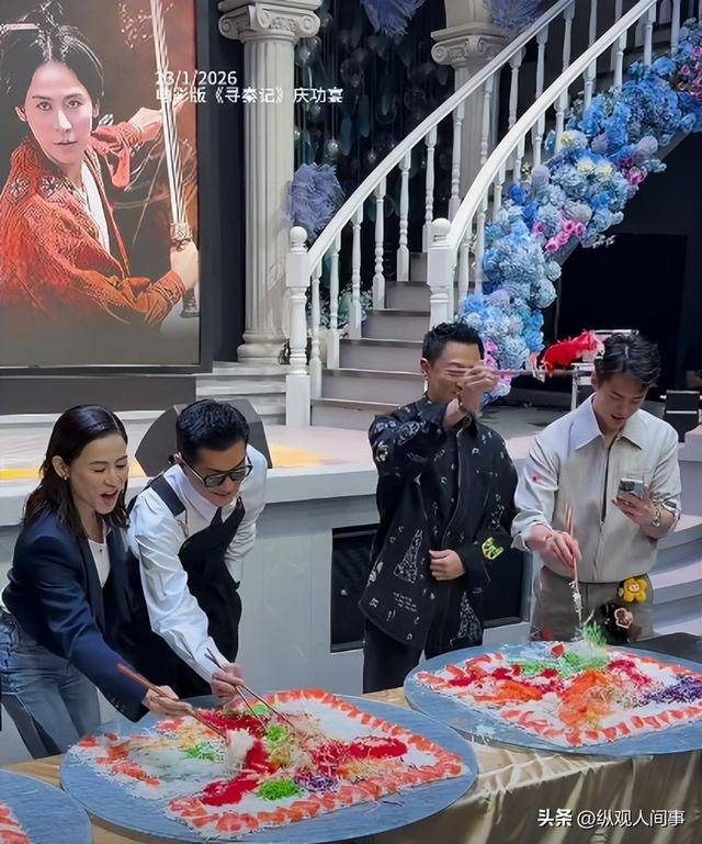 随着主持人一声 “捞生大吉”,古天乐、林峯、宣萱等人拿起长筷,朝着铺满鱼生、萝卜丝、花生碎的大圆盘齐齐下手。