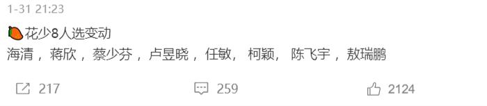 前不久,网上传出《花少8》将出发去“南极”,根据知情人士透露,阵容也已经确定,依旧是8人,分别是:蔡少芬、海清、蒋欣、柯颖、卢昱晓、任敏、敖瑞鹏、陈飞宇。