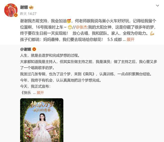 谢娜官宣首场个人演唱会,张杰力挺:放心去唱