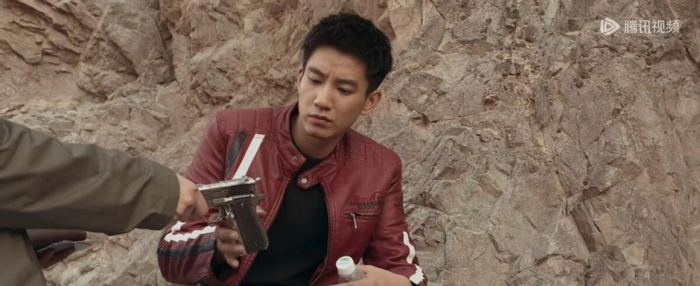 开场时,楚一寒身穿红色皮夹克,骑着摩托在西北荒漠中疾驰,追击罪犯龙柒。