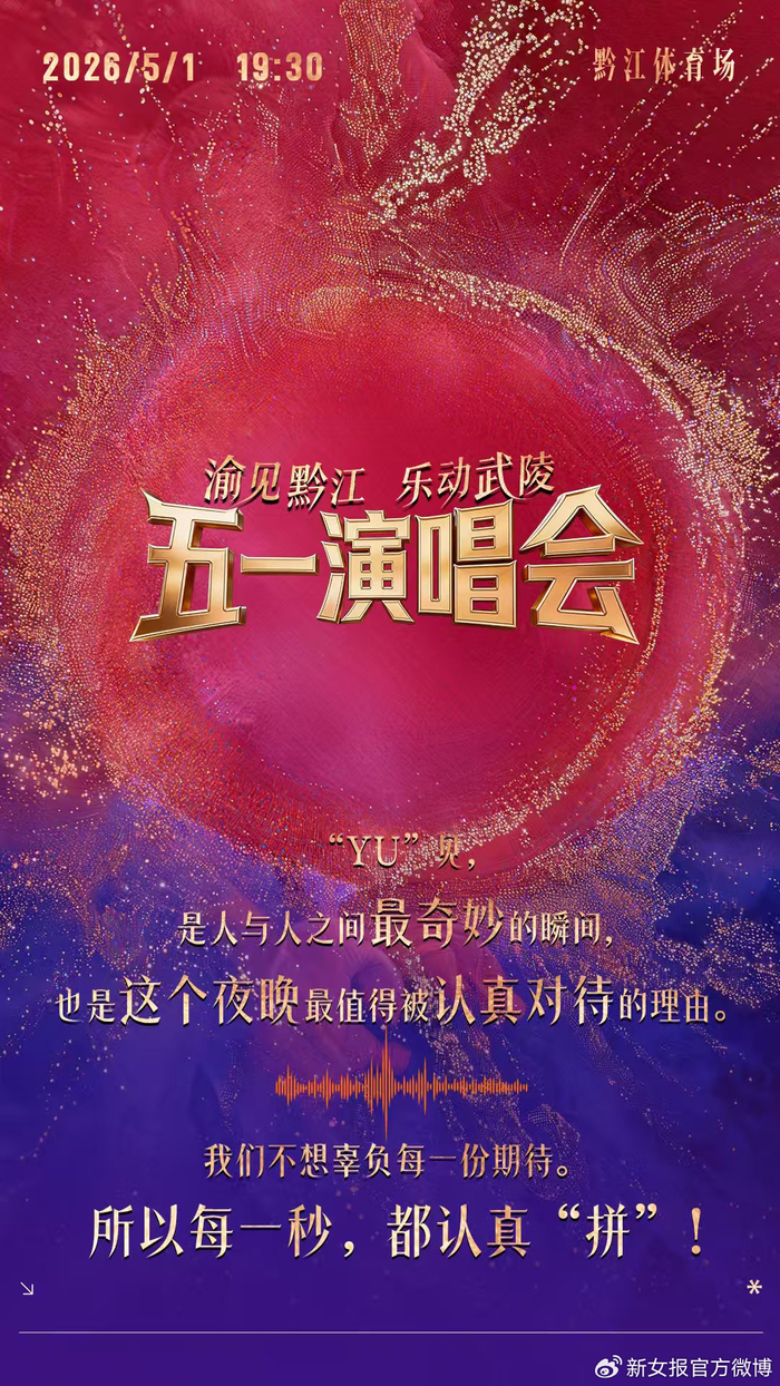 “渝见黔江·乐动武陵”五一演唱会定档5月1日,落地重庆黔江体育场,张靓颖、GAI(周延)、王蓉、四熹丸子(徐化文)四大实力唱将齐聚,顶级舞美+惊喜福利拉满!
