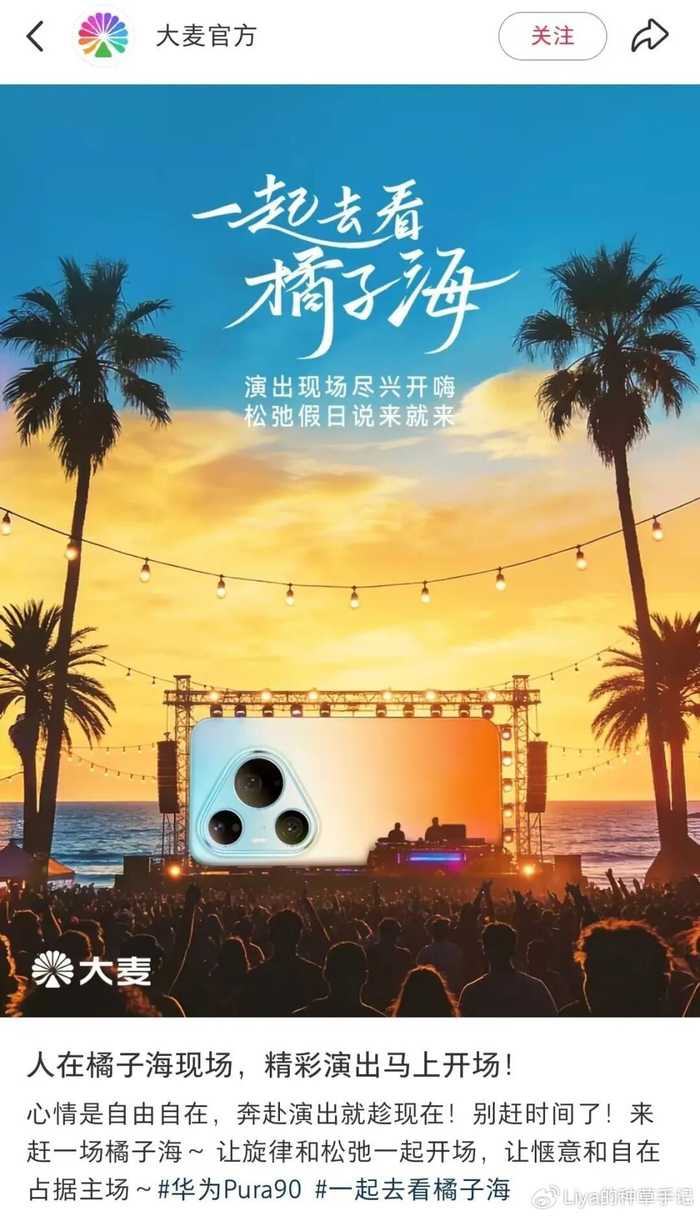 而华为呢?它什么都没解释,但所有人都记住了Pura 90有一个叫“橘子海”的颜色,记住了这个春天大家都在“一起去看橘子海”。