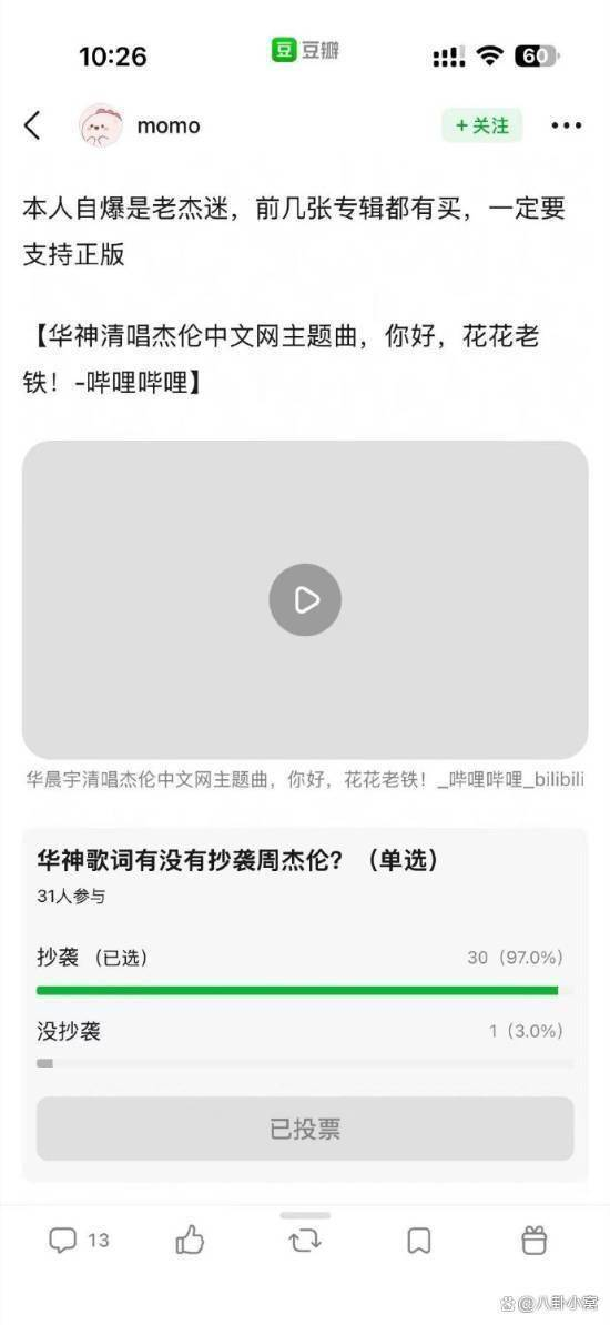 此次事件重新引发关注后,网络舆论出现了明显分歧。支持抄袭论者认为歌词相似度远超巧合范畴,尤其《造物者》与《同一种调调》的“生活习惯四连撞”已构成“洗稿式创作”。有网友投票显示,97%的参与者认定抄袭。