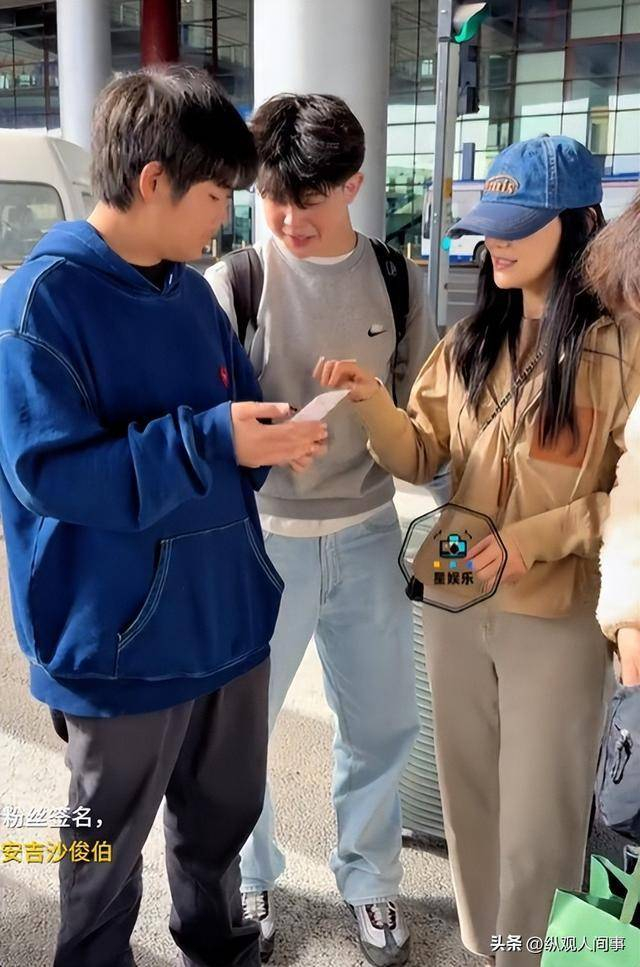 胡可一家现身机场,鱼儿瘦有10斤又帅了,安吉给粉丝签名弟弟偷看