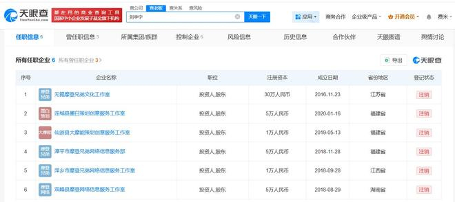 天眼查App显示,刘宇宁名下关联6家企业,包括无锡摩登兄弟文化工作室、连城县墨白策划创意服务工作室、萍乡市摩登兄弟网络信息服务工作室等,目前上述企业均已注销。孙凡清(宋祖儿)名下关联4家企业,目前仅上海泓泉影视文化有限公司处于存续状态。值得一提的是,刘宇宁与宋祖儿无直接商业关联。