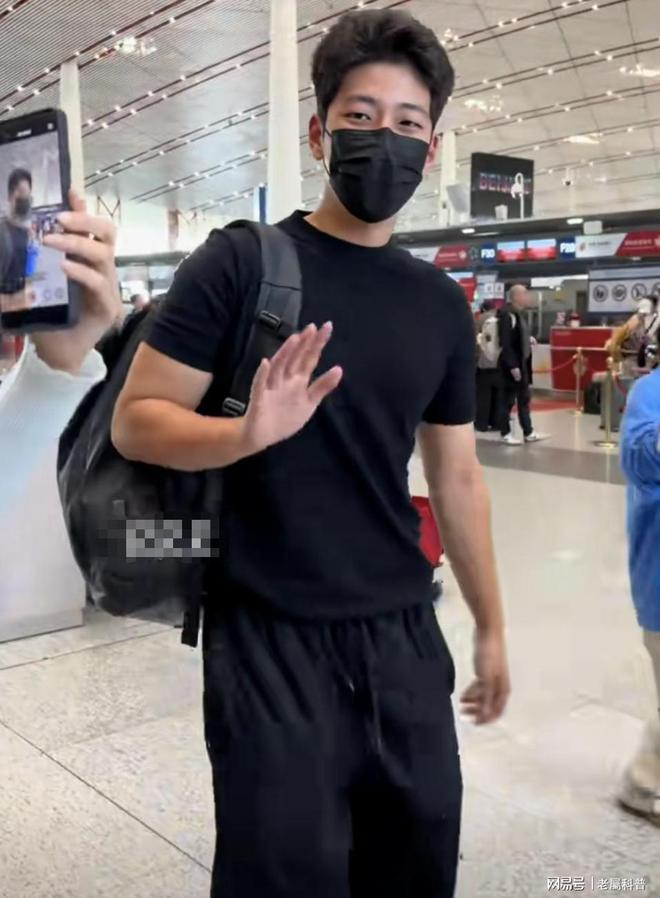 近日,他被偶遇现身机场,一身黑色穿搭变成了型男,身材健硕,大方挥手打招呼,又高又帅的。
