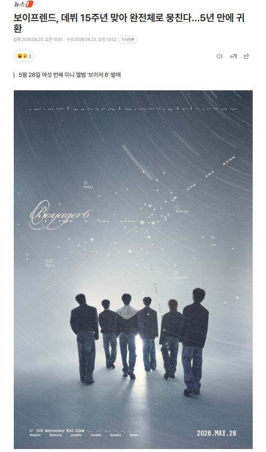 本月23日,BOYFRIEND宣布将于今年5月26日发行出道15周年纪念迷你专辑《Boyager 6》。这张专辑预计将成为献给Best Friend(粉丝名)的特别礼物。