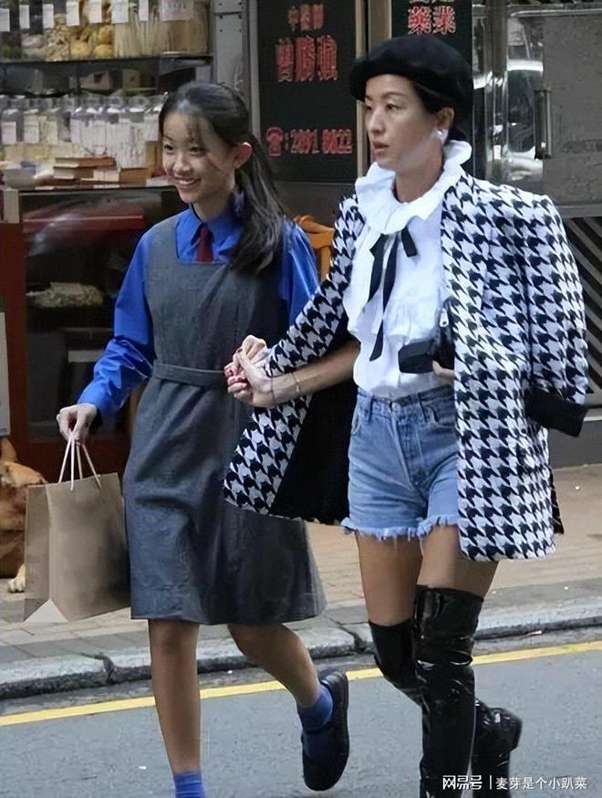 有报道说她一小时逛掉80万港币,接女儿放学穿一身千鸟格配皮靴,在一群普通家长中间格外扎眼。