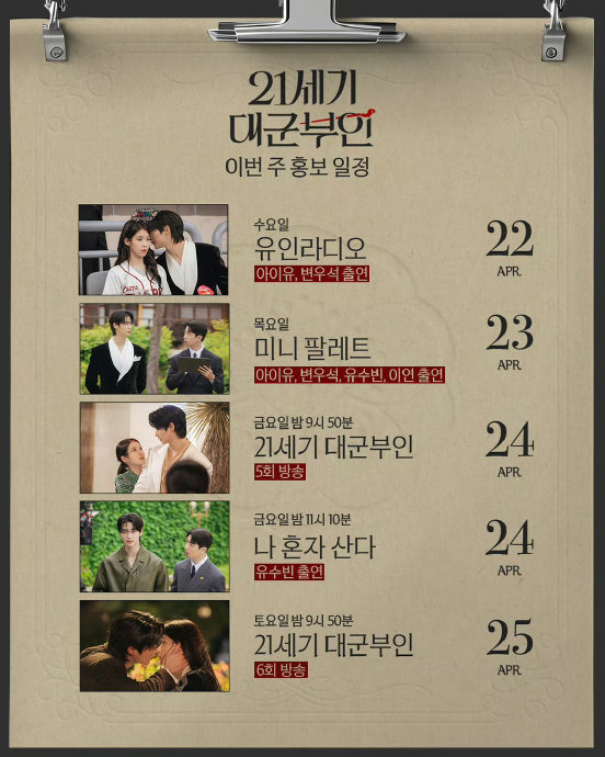《21世纪大君夫人》第6集以契约婚姻的张力升级、浪漫求婚和高甜吻戏引爆全网热议,收视峰值达25.57%,打破韩剧传统套路的设计进一步强化了观众追剧热情。