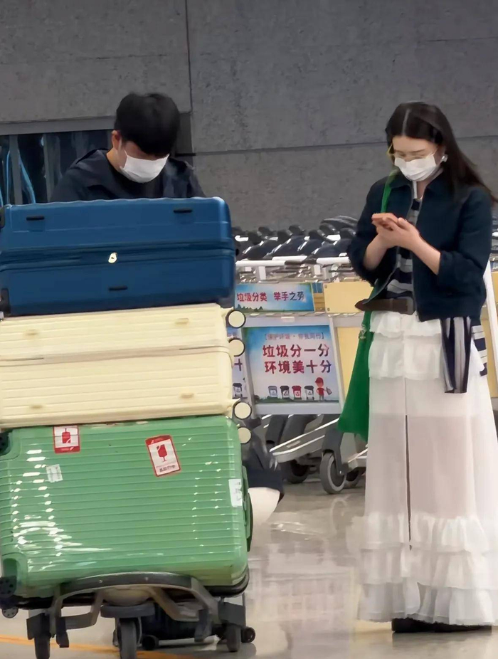 阚清子昨天生日,老公接机帮她推行李准备超大束鲜花,真的好幸福