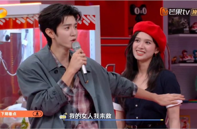 在“落水救援”假设环节,当主持人何炅提问“如果全场除我之外的人都掉进水里先救谁”时,陈哲远毫不犹豫指向张婧仪喊出宣言级金句:“张婧仪,我的女人我来救!”语气笃定引发全场尖叫。这句即兴回应因强烈的占有欲和角色代入感,瞬间登上微博热搜首位,被网友评价为“偶像剧照进现实”。