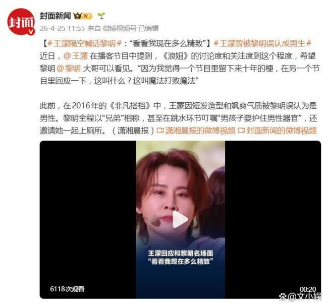 十年后,王濛在《乘风2026》的舞台上再次走红,想起了当年的老大哥。在播客里,主持人问她:“经过了一公,这个世界上还有你不能打败的事儿吗?”王濛霸气回应:“有也不多了吧。”接着她说:“我觉得节目组现在的讨论度和关注度到这个程度,我希望黎明大哥可以看见。因为我觉得一个节目里留下来十年的梗,在另一个节目里回应一下,这叫魔法打败魔法。”