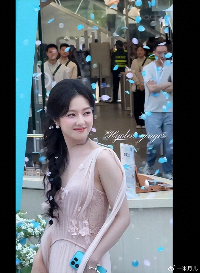 李兰迪浅粉纱裙,温婉出镜,元气满满!