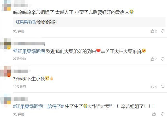 网友们纷纷在评论区里留言祝福,并感慨红果果真的辛苦了,希望大栗长大后能好好孝顺妈妈,还有人调侃说这是智慧树下生小伙。