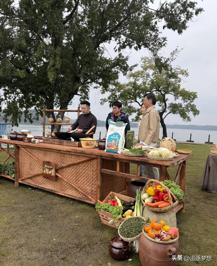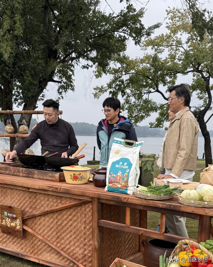 从照片中可以看出,是在录制三餐四季的节目,以海边为背景,周围摆满了蔬菜、面粉、油之类的做饭食材,然而河南最近都在下雨,天气是阴冷的,吴奇隆穿的也相当厚, 两手搭在后面,从侧面看本人都不像54的人倒像45岁的样子。