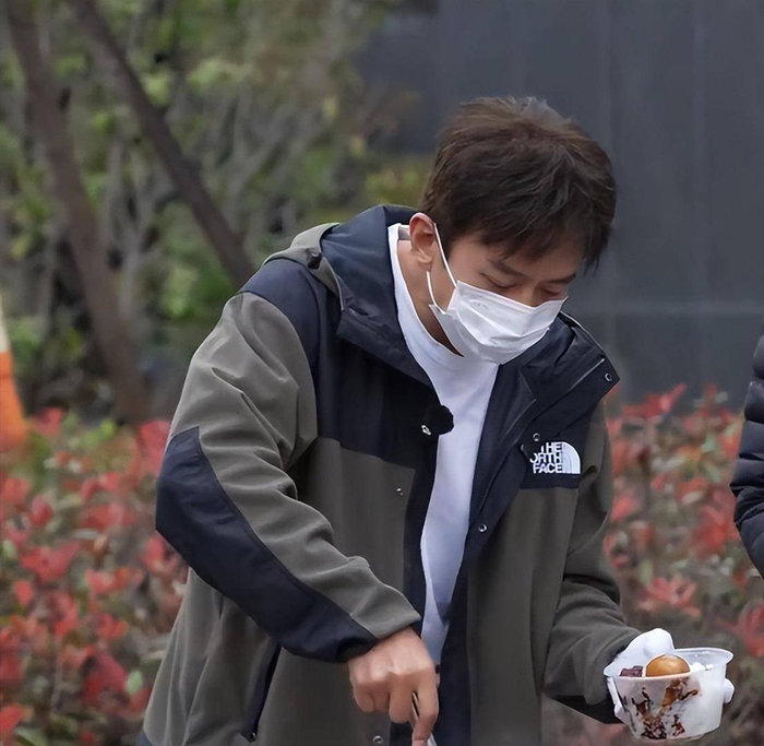 一到小摊前,邓超没有丝毫架子,二话不说就穿上围裙、戴上口罩,化身热情的“打饭小哥”。