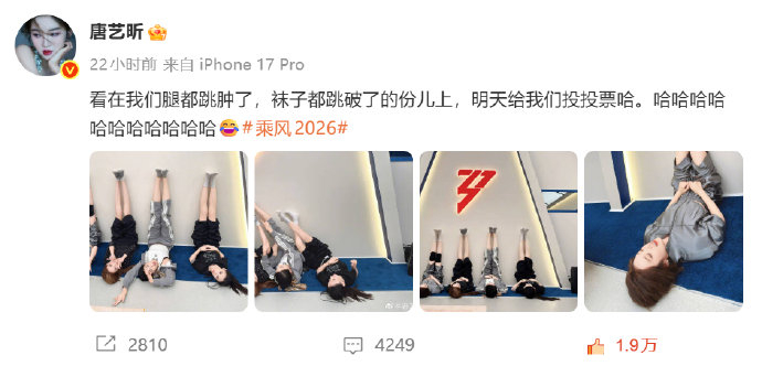 唐艺昕在《乘风2026》二公舞台中因主动分担高难度段落、幽默化解表演争议,被全网赞为"高情商教科书"。