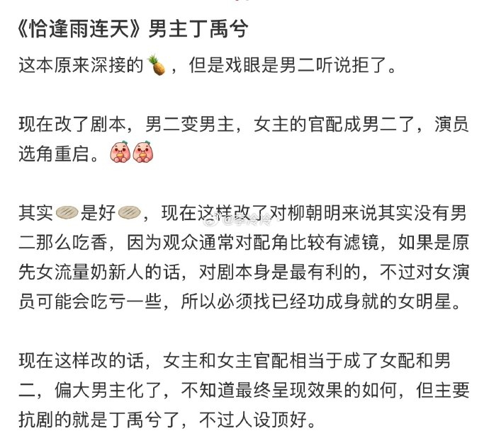 剧本被曝将原著边缘角色柳朝明升格为男主,女主官配朱南羡降为男二,剧情偏向“大男主化”。此举引发书粉不满,担忧背离故事内核。