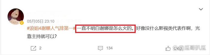 她就可以放心在浪姐4里展现自我,有人说,想不明白,谢娜为什么热度那么高?